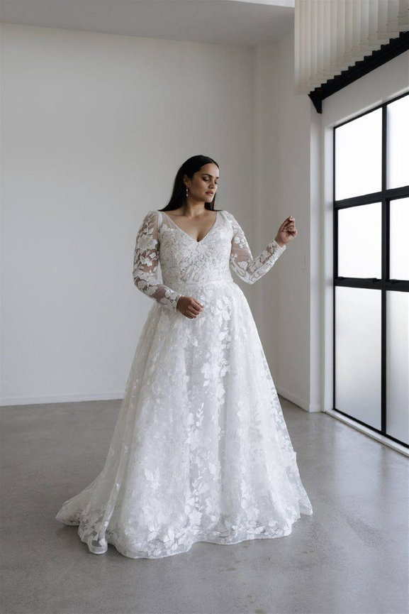 A magical floral plus-size wedding dress.